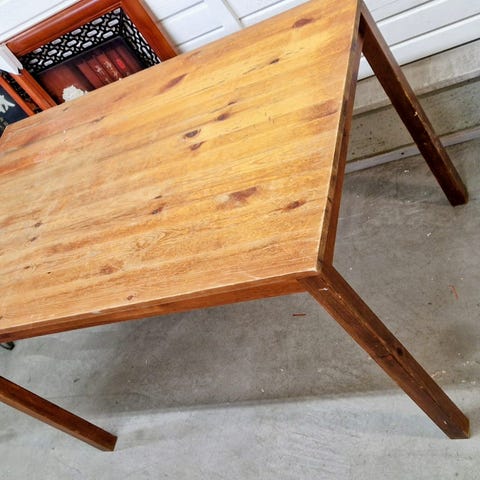 Pieni puinen kahdeksankulmainen pöytä. Leveys kulmasta kulmaan 68 cm, korkeus 56 cm, alatason leveys 40 cm. Kaksi tasoa. .