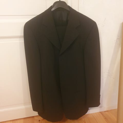 Myydään vähän käytetty miesten puku. Takin napit vaihdettu, mutta muuten moitteeton kunto. Kokolappua en löytänyt, mutta ollut käytössä normaalivartaloisella miehellä.