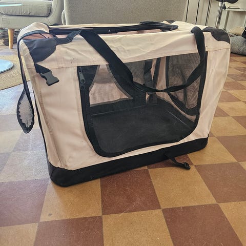 Helppokäyttöinen, kokoontaitettava kangashäkki kestävällä teräsrungolla. Kätevä koiran odottelupaikka mm. koiranäyttelyissä ja treeneissä.