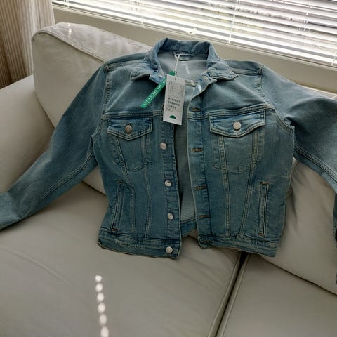 Hyväkuntoinen, ehjä, vaaleansininen H&M farkkutakki.