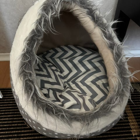 Hyväkuntoinen käyttämättä jäänyt kissan pesä.