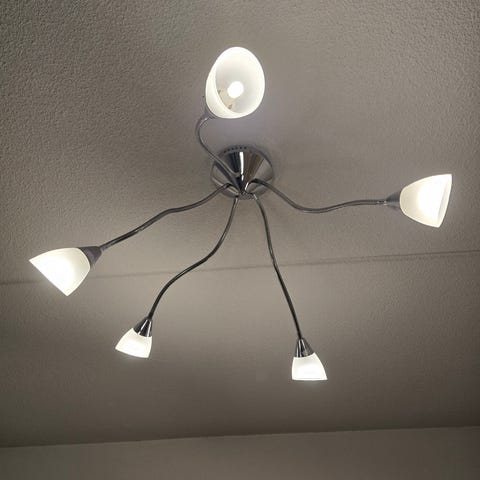 Myydään upea toimiva kattovalaisin pöydän päälle. Leveys metallitangon kohdalla 100 cm, leveys mitattuna lamppujen alaosan kohdalta 116 cm. Korkeus säädettävä. Myydään ilman lamppuja.