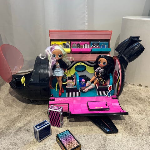 L.O.L. Surprise! lentokoneleikkisetti. Leikkisetti avautuu suureksi lentokoneen sisätilaksi, jossa on useita istuimia, pieniä pöytiä ja säilytyslokeroita nukkien ja tarvikkeiden käyttöön. Ulkopuolelta lelu muistuttaa matkustajalentokonetta, jossa on siivet ja moottorit. Soveltuu L.O.L. Surprise! -nukeille ja vastaavan kokoisille nukeille mielikuvitusleikkeihin.