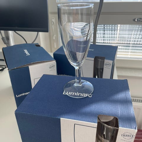 Luminarc kuohuviinilasit 30kpl, alkuperäispakkauksissa (5x6 lasia). Ehjät, vähän käytetyt (kahdet yo-juhlat).