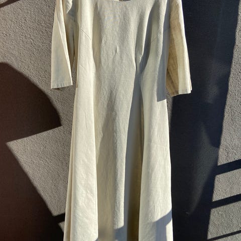 Tyylikäs Pura Finland pellavamekko. Koko M, mutta mielestäni L tai XL. Kainalo-kainalo 60 cm. Sivuissa halkiot. Sivutaskut. Postitus onnistuu.