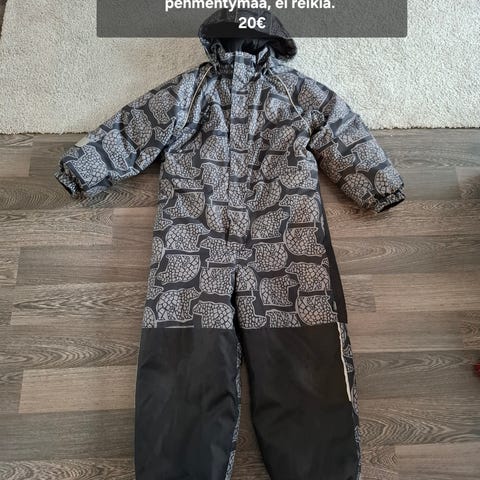 Myydään Peuhu toppahaalari koossa 120 cm. Dinosauruksia kankaassa. Kulumaa jo siellä täällä ja toisessa polvessa pieni reikä (voin pistää mustan tarrapaikan mukaan), vielä kelpaa kuitenkin rymykäyttöön. Ei hajusteita tai lemmikkejä