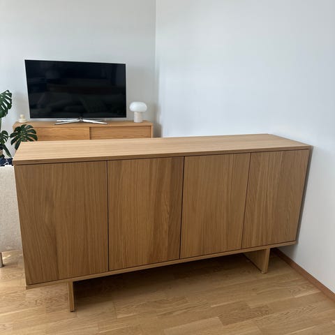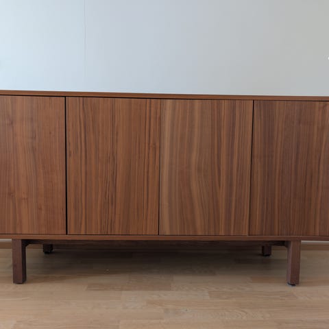 Myydään pari vuotta käytössä ollut IKEAn kaunis ja tukeva pähkinäpuun värinen senkki. Paljon säilytystilaa! Tätä mallia ei enää valmisteta, ovh 500€.