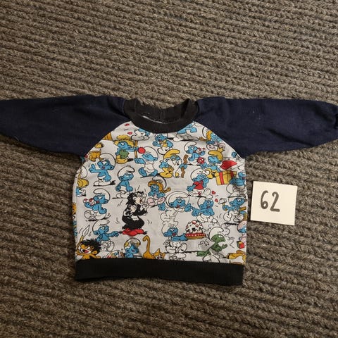 Mikki-hiiri college pusero. Kokomerkintä 74 cm, mutta selvästi pienempi. Oli käytössä koossa 62-68 cm. Kaula-aukossa pukemista helpottavat napit. Erittäin siistissä kunnossa.