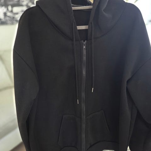 Hieman elämää nähnyt siisti ja hyväkuntoinen huppari, lyhyemmillä hihoilla.