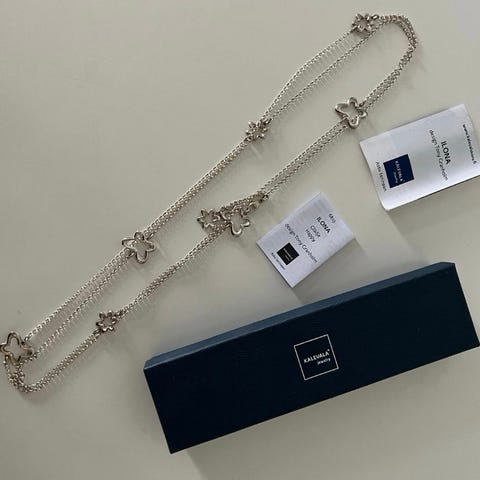 Hopeinen Kalevala rannekääty Ilona, kiedotaan kaksinkerroin ranteeseen tai kerran kaulaan