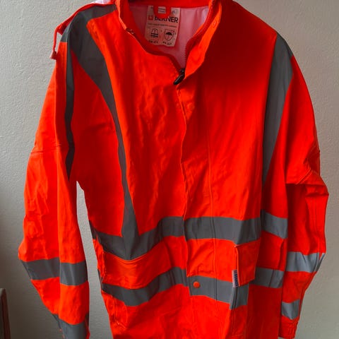 Käyttämättömät metsurin sadevaatteet (?). Takki Suomessa valmistettu, koko säädettävä edessä olevien painonappien ansiosta. Housut Husgvarna merkkiset, koko reilu XL. Housujen takaosa vahvempaa materiaalia. Housujen yläosassa hengittävyyttä parantavaa verkkomateriaalia.