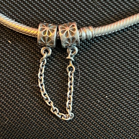 Erittäin harvinainen Pandoran turvaketju niin hyvässä kunnossa, että voisi olla uusi. Kauniit oksidoidut yksityiskohdat. <3