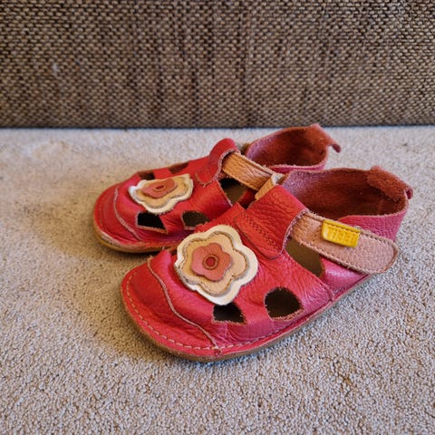 Hyvässä kunnossa olevat, ehjät ja siistit Tikki Nido kesäkengät koossa 23. Myös kenkien ompeleet ja kengänsuut ovat ehjät.