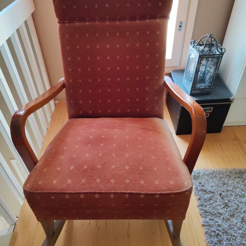 Vitra Eames tyylinen keinutuoli, jalan puuosat maalattu.