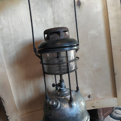 Tilley-lamppu, joka on klassinen valopetrolilla toimiva painelamppu.
