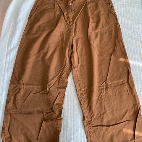 Kappahlin M-kokoiset ruskeat leveälahkeiset culottes-housut. Väri näkyy paremmin seuraavassa kuvassa. Hyvässä kunnossa.