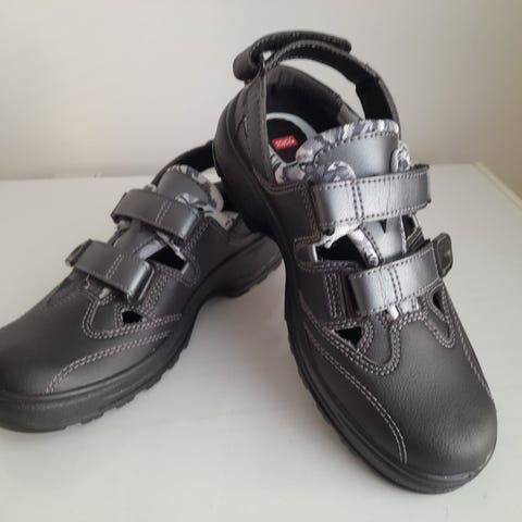 Jalas työkengät, koko 37. Väriltään mustat, tarrakiinnityksellä. Tallikäytöstä, putsaus ostajalle.