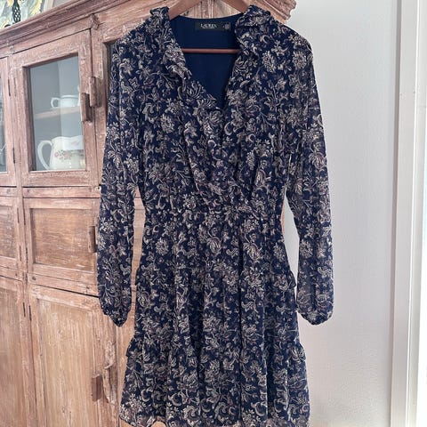 Ralph Lauren Polo naisten kesämekko, koko 34. Väriltään beige, jossa kukkakuviointi. Materiaali on viskoosia. Mekossa on nappikiinnitys edessä sekä röyhelisomisteita. Hihat ovat noin 3/4-pituiset ja helma on väljä ja laskeutuva. Sopii arkeen ja juhlaan lämpimiin säihin.