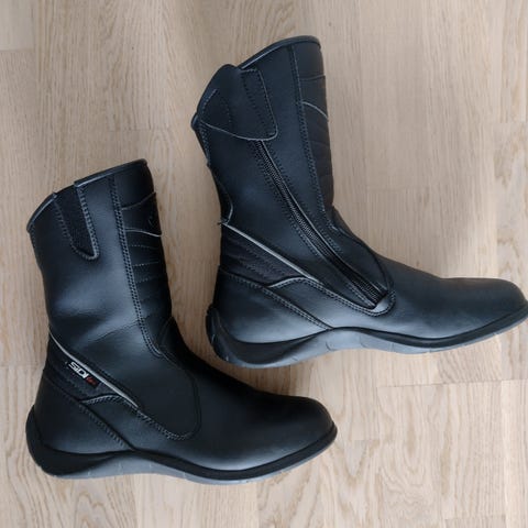 Mustat ajokengät. Kengissä on nilkkapituiset varret, vetoketju- ja tarrakiinnitys sekä vahvistettu etuosa. Pohjassa pitävä kuviointi. Sopivat moottoripyörä- tai skootterikäyttöön tai muuhun ajoon, jossa tarvitaan suojaavia ajokenkiä.