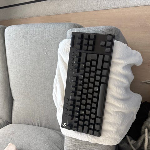Erinomaisessa kunnossa oleva Logitech Mx Keys S. Mukaan usb-adapteri ja latausjohto.