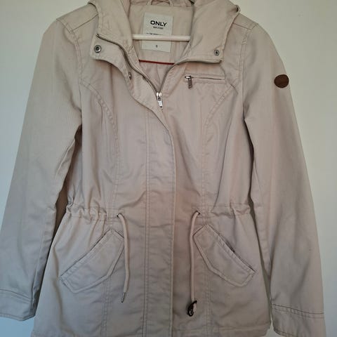 S Only kevättakki. Beige. Kiinnitys neppareilla. Kaulukseton malli. Nouto.