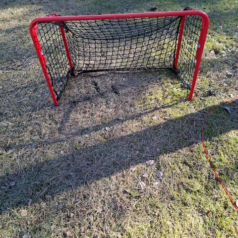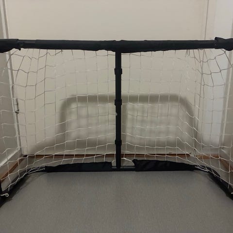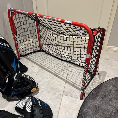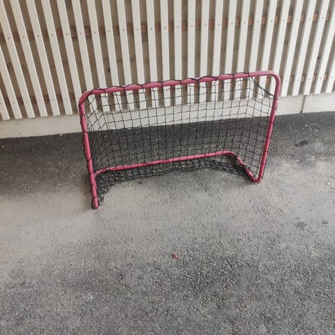 Salibandy maali harjoitteluun jossa metallinen punainen runko ja valkoinen verkko. Soveltuu monien mailapelien harjoitteluun ja pelaamiseen pihalla, jäällä tai hallissa. Maali on vapaasti siirrettävä ja voidaan asettaa eri alustoille, kuten betonille, asfaltille tai jäälle. Verkko on kiinnitetty runkoon useista kohdista. Ollut meillä aina sisällä. Hyvässä kunnossa.