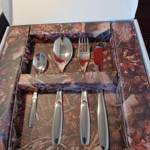 Käyttämätön pakkaus Savonia / Hackman ruokailuvälineitä, yhteensä 24 kpl: HAA 6kpl VEI 6kp LU 6kpl ja pikkulusikat 6kpl. Salaattiottimet eivät sisälly pakkaukseen. Design Adolf Babel 1967 Finland. Nouto tai postitus.