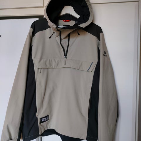 Halti naisten ulkoilutakki koossa M. Takki on sininen, jossa tummemmat vahvikekohdat hartioilla. Materiaalina polyesteri. Mallissa on kiinteä huppu, täyspitkä vetoketju edessä sekä vetoketjulliset taskut sivuilla. Hihansuissa on kuminauhakiristys. Sopii yleiseen ulkoiluun ja arjen käyttöön.