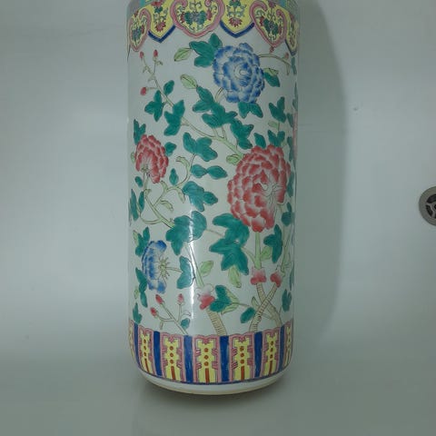 Kiinalainen kaunis koriste ruukku / uurna / ginger jar kannella. Hyvässä kunnossa. Vanha, joten pientä jälkeä vuosien varrelta mutta ehjä ja hienossa vintage kunnossa! Katso kuvat. Mittoja kuvissa. Voi käyttää myös maljakkona ilman kantta. Todella kaunis. Käsinmaalattu ja kultamaalilla tehtyjä yksityiskohtia.