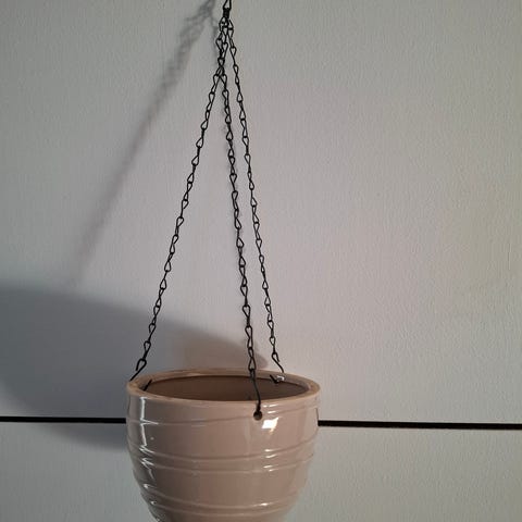 Kaunis ruskea hunajakellomaisella pintakuviolla keraaminen amppeli. Ehjä, siisti. Halkaisija 18cm ja korkeus ilman ketjua 15cm