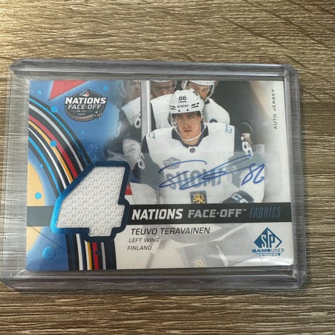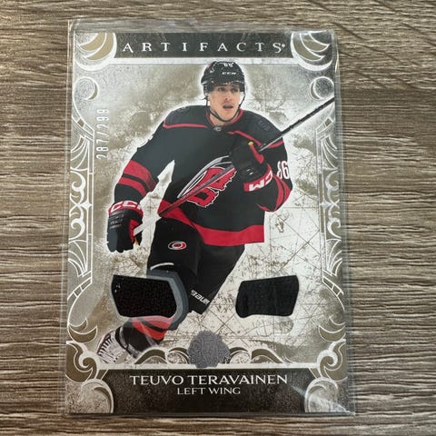 Upper Deck SPx jääkiekkokortti, jossa pelaajana Teuvo Teräväinen. Kortti sisältää upotetun pelipalan ja esittää Teräväisen Carolina Hurricanes -seurassa. Kortin taustapuolella on pelaajan perustiedot, tilastot ja sarjan merkinnät. Sopii keräilyyn ja kokoelmiin, joissa keskitytään NHL- ja Carolina Hurricanes -aiheisiin kortteihin.