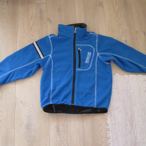 Ulkotakki on yleisilmeeltään siistissä käytetyssä kunnossa. Taskun vieressä muutama nyppy/karheuma (kangas täysin ehjä). Vetoketjun yläpään vieressä kulumakohta molemmin puolin ja fleece kohdissa nukkaa. Valkoisissa kohdissa vähän haaleaa jälkeä.