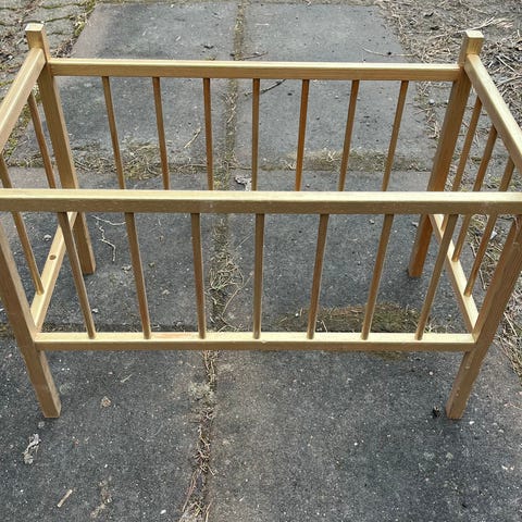 Puinen vaaleanpunainen nuken kehtosänky. Merkistä en ole varma. Sopiva Baby bornin kokoiselle nukelle. Pieniä käytön jälkiä, mutta siisti yleisilmeeltään. Mukaan peitto ja tyyny. Nouto paroalhosta.