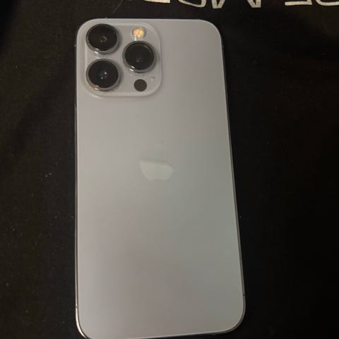 Apple iPhone 13 älypuhelin, tallennustila 512 GB. Väri vaalea/valkoinen. Laitteessa on kaksi takakameraa ja koko näytön etupuoli.