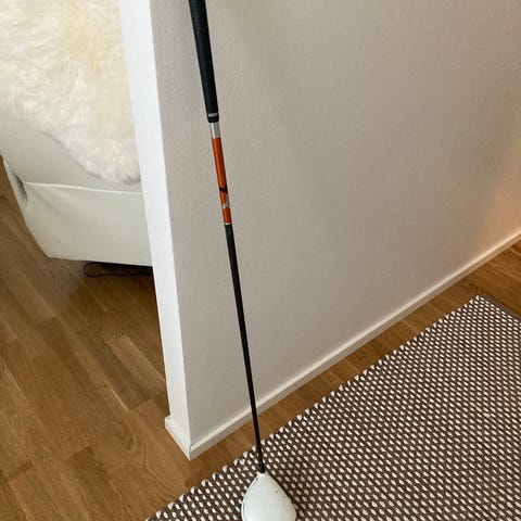 TaylorMade R1 draiveri säädettävällä loft-asetuksella. Mailan päässä on valkoinen, musta ja oranssi viimeistely sekä selkeä tähtäysmerkki. Lyöntipinta on musta ja uritettu. Varressa on TaylorMaden oranssi grafiittivarsi, jossa on R-flex -jäykkyys. Draiveri soveltuu golfpelaajalle, joka haluaa säätää mailan loft-kulmaa omaan lyöntiinsä sopivaksi.