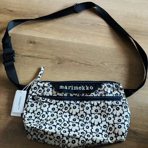 Olkalaukussa on vetoketjusuljenta, avoin ulkotasku ja säädettävä olkahihna.