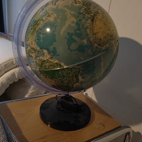 Vanha Aasian kartta, jossa myös eri Aasian maiden liput. Materiaali on jotain todella kevyttä ja huokoista. Pinnassa on muutamia pistojälkiä, katso kuvat. Kiva edukatiivinen sisustuselementti!