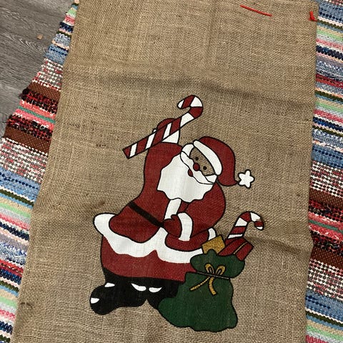 Käytetyt (ehkä) mutta vielä hyväkuntoiset juuttikankaasta valmistetut säkki ja liina.