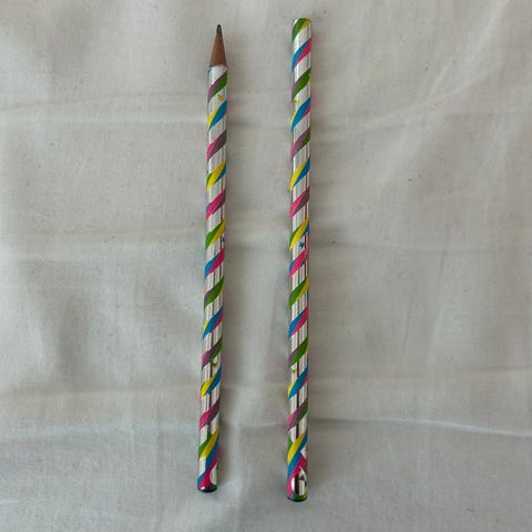 43 kpl teroitettuja lyijykyniä kumi päässä, 5 eri väriä. Ollut käytössä yhdessä juhlassa.