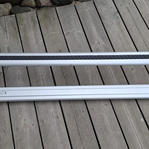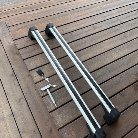 Ford kattotelineet henkilöautoon. Materiaalina alumiini, päissä muoviset kiinnikkeet. Sopivat auton kattokaiteisiin kiinnitettäviksi. Sopivat vm. 2008 mondeo tdci mk4 avonaisiin lattokaiteisiin. Mukana 2 avainta.Lukot toimii.