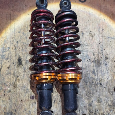 Siitä lähtis +4 takahaarukka. Ketjun kiristimet löytyy ja jarrutanko. Kulunut on