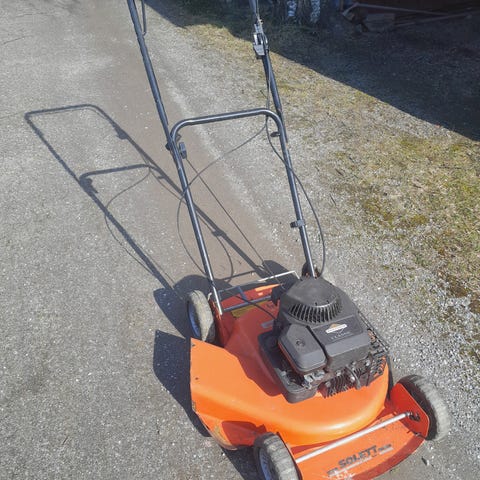 Soletti ajoleikkuri punainen. Polttomoottorikäyttöinen ruohonleikkuri, jossa on istuin ja ohjauspyörä. Leikkurissa on neljä rengasta ja alla sijaitseva leikkuuyksikkö. Runko on terästä ja väriltään punainen, leikkuukotelo keltainen. Soveltuu nurmikon leikkaamiseen piha‑ ja puutarha‑alueilla.