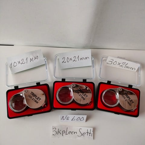 Setti sisältää mm 20x21 mm ja 4 kpl setin 5x 10x 15 x ja 20x sopii mm kello korut postimerkit ym toimitus 6€