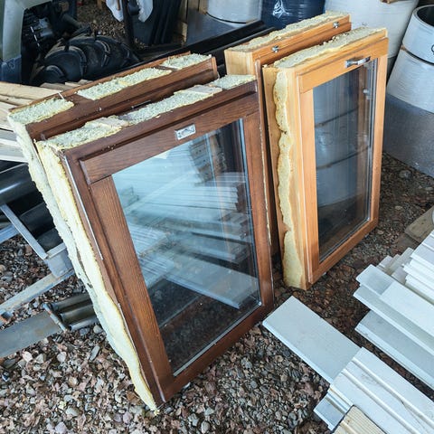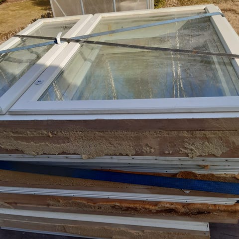 Ikkunat ovat uudet ja asentamattomat.