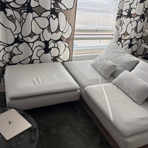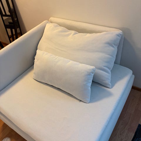 Ikean Söderhamn valkoisen/vaalean divaanisohvan päälliset (lukuunottamatta yhtä istuinosan päällistä, joka rispaantunut). Eli pääliset kulmaosa, divaani osa sekä yhden istuttava palan päälliset paitsi itse istuinosa kangas puuttuu. Mahdollisesti joitain haaleita läikkiä voi olla mutta ei kyllä silmäänpistäviä. Juuri pääliset pesty. Haku Hirvaskangas.