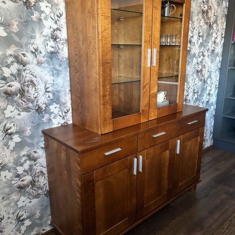 Senkki kaapilla ja lasiliukuovilla. Korkeus 98cm,leveys 120cm, syvyys 27cm. Kaappiosan leveys 40cm. Kansi siisti.
