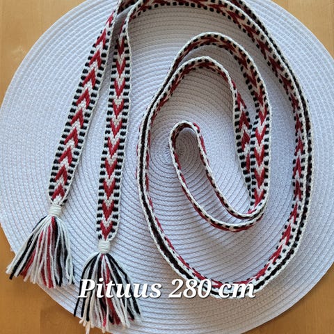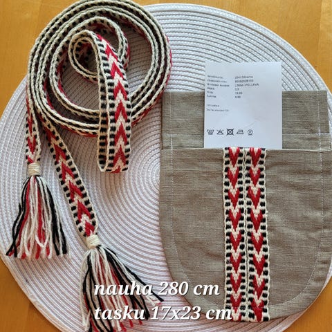 Jos omistaa asuun kuuluvan pirtanauhan, puetaan se hameen päälle. Olen myynyt omani. Huom. Hame myös myynnissä.
