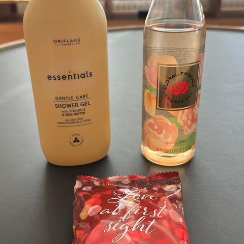 Oriflame käyttämättömät suihku- ja ihonhoitotuotteet pakettina