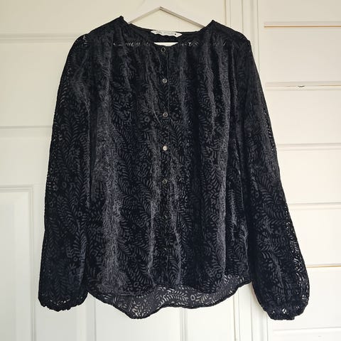Mallissa on pitkät hihat ja nauhakiinnitys pääntiellä. Sekä napit.