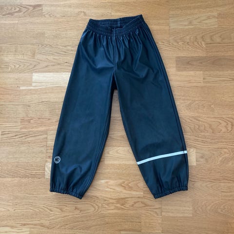 Mustat kurahousut ja kuratakki. Molemmat koko 116. Ohut vuori molemmissa